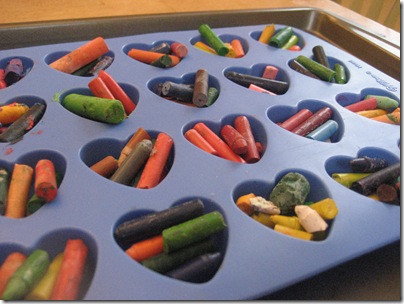 These heart crayons are really easy to make. I discovered this really cute idea around Valentine’s Day last year. From an Igloo has a tutorial here. We have been saving our broken crayons for a while now.